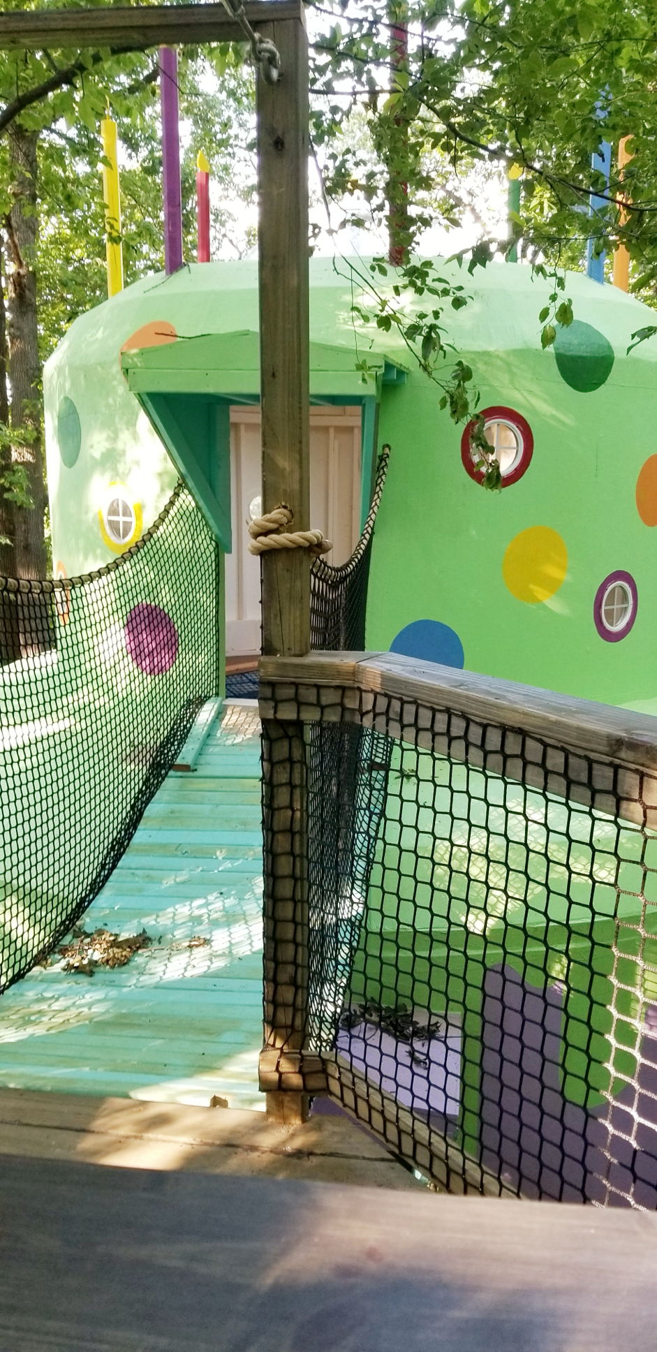 The Cake Treehouse is located in the ONCE UPON A TREEHOUSE area of the park. Each treehouse in this zone is thoughtfully designed to inspire and delight. The Once Upon A Treehouse area of the park is particularly appealing to toddlers and younger children.