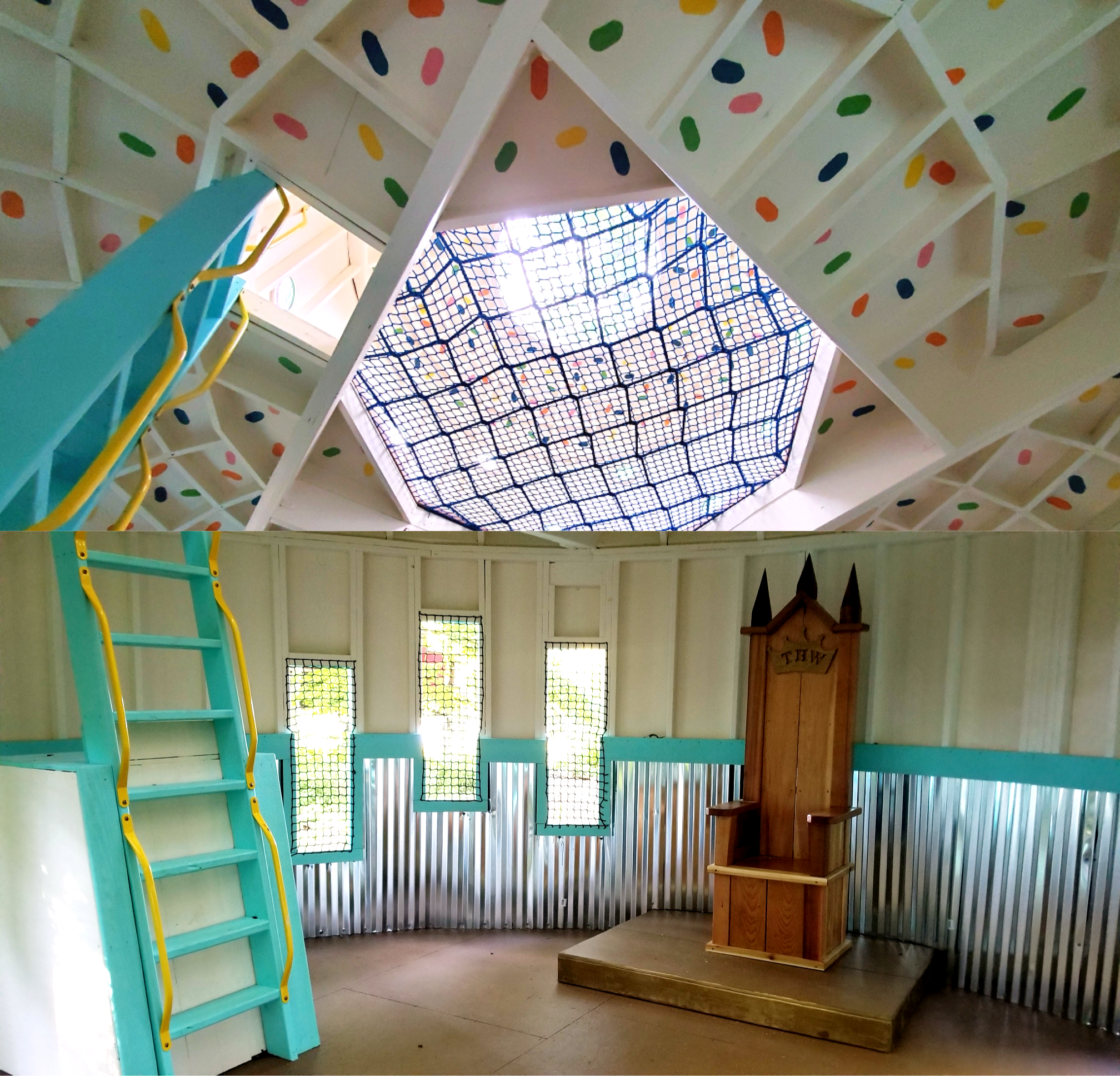 Fit for young royalty, the Cake is a fantastical delight inside- with a royal throne to settle in for a perfect tea party, and an awesome cargo climb loft net suspended above!