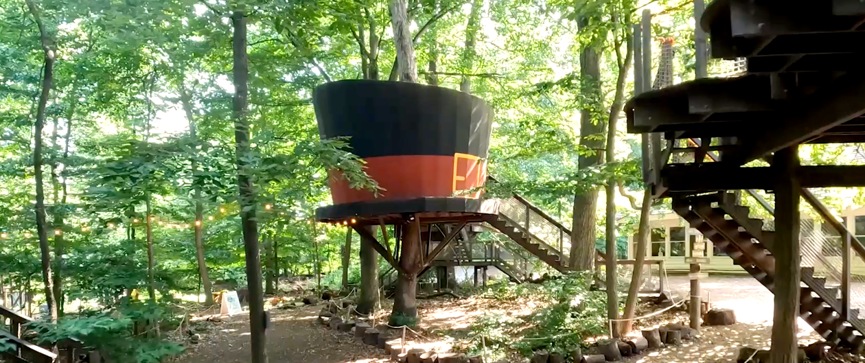The Top Hat Treehouse is located in the ONCE UPON A TREEHOUSE area of the park. Each treehouse in this zone is thoughtfully designed to inspire and delight. The Once Upon A Treehouse area of the park is particularly appealing to toddlers and younger children.